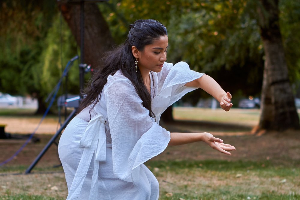 Fiana trained in Kathak at Kadamb in Ahmedabad, India, a leading institute for modern choreography. She has performed independently and ensemble across the globe. Her current practice is local, public-engaged, and committed to fostering long-term artistic and interdisciplinary collaborations. She is exploring labouring bodies, waterways, and unmastery in her site-specific choreographies. Her art practice has been supported by the Dance Centre, Dance Victoria, New Works, Dance West, and BC Culture Days to name a few.